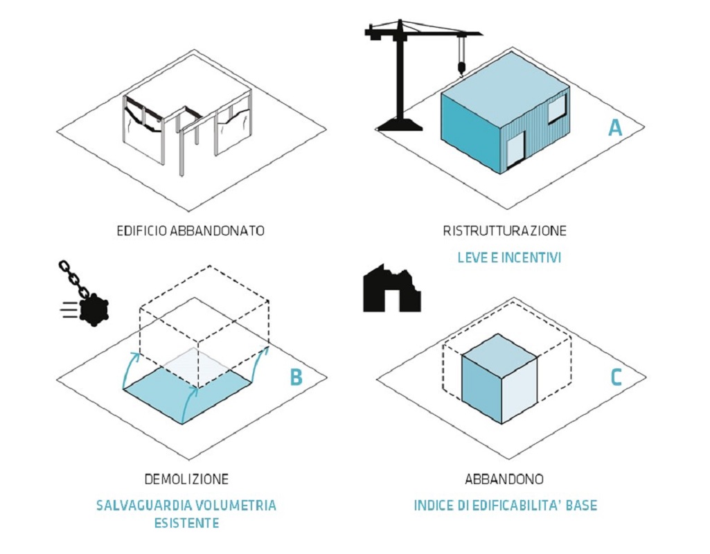 Riqualificare l’esistente per non consumare ulteriore suolo pubblico. Il Piano individua alcuni “Ambiti di Rigenerazione Urbana”, aree ai margini del territorio che dovranno essere valorizzate con interventi mirati al recupero del patrimonio edilizio degradato. Si prevede inoltre il recupero di 3mila alloggi di edilizia residenziale pubblica, la realizzazione nell’ambito dell’Accordo di Programma sugli Scali Ferroviari di alcuni alloggi a canone sociale, la sperimentazione in 10 aree pubbliche di edilizia popolare e servizi abitativi all’interno di contesti sociali misti. Si prevedono infine misure severe sul fronte degli edifici abbandonati, prevedendo la perdita dei diritti volumetrici esistenti e l’assegnazione solo dell’indice di edificabilità unico per chi lascia stabili in stato di degrado.